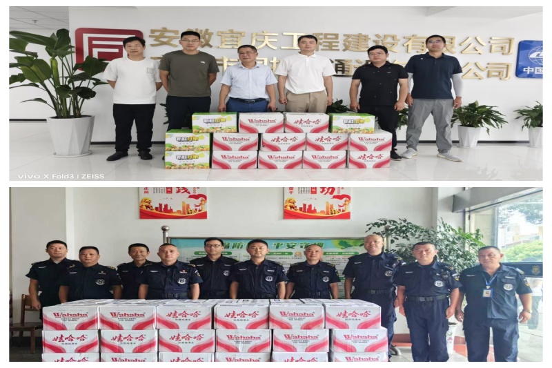劉光輝帶隊前往宜慶工程建設(shè)公司、同慶保安公司,詳細了解員工戶外高溫工作中的安全防護措施,對大家頂烈日、戰(zhàn)高溫的敬業(yè)精神給予充分肯定,并為項目現(xiàn)場員工、一線保安隊員分發(fā)降溫用品。他指出,在高效推進工作的同時,必須守牢安全底線,保障好廣大員工的生命健康,將防暑降溫工作落到實處,為各項工作穩(wěn)步推進創(chuàng)造良好條件。