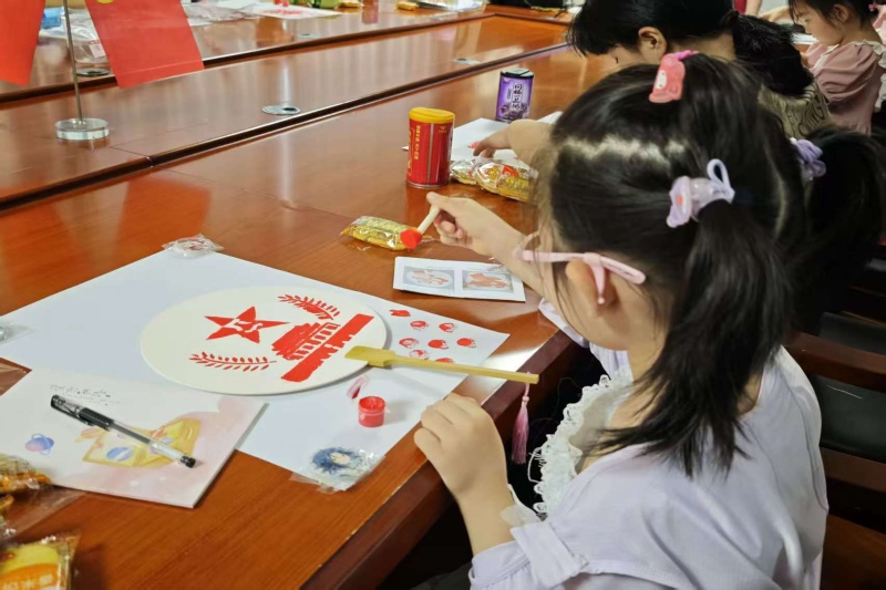 活動(dòng)現(xiàn)場(chǎng),公司黨員志愿者向孩子們發(fā)放了印有國(guó)旗、黨徽、“童心向黨”“不忘初心”等元素的拓印模板、空白扇子及顏料等材料,并圍繞紅色符號(hào)展開講解,讓大家理解每個(gè)圖案背后的歷史意義和精神內(nèi)涵。隨后志愿者們示范拓印方法,孩子們專注投入,有的仔細(xì)調(diào)整圖案位置,有的認(rèn)真拓上紅色顏料,現(xiàn)場(chǎng)氛圍熱烈且充滿活力。